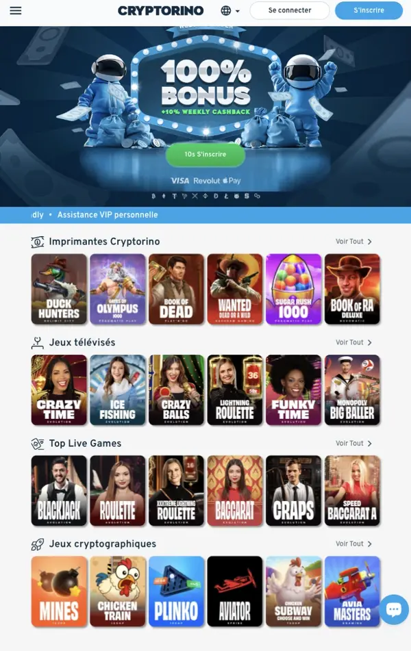 Sur un seul écran, vous accédez aux Machines à sous, Jeux de table, Casino Live, Jeux à jackpot, Jeux Crash et à notre Paris sportifs. Si vous aimez les tours de rouleaux, les machines à sous CryptoRino regroupent des milliers de titres de studios reconnus, avec les règles du jeu et les indications de RTP affichées dans la section d’aide de chaque jeu. Si vous préférez l’action en temps réel, les tables avec croupiers en direct fonctionnent de manière fluide grâce à des flux stables et des limites claires.